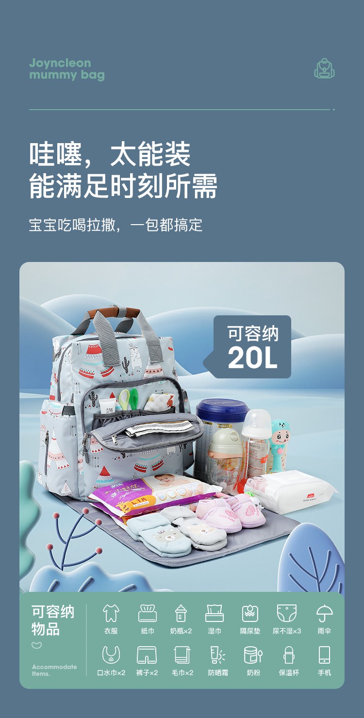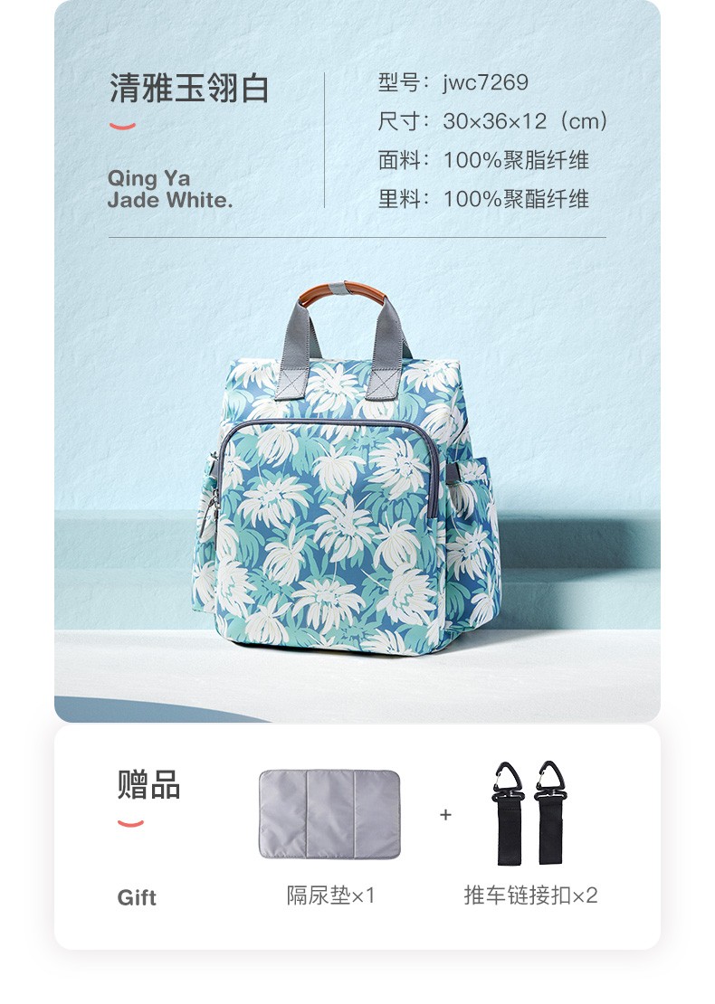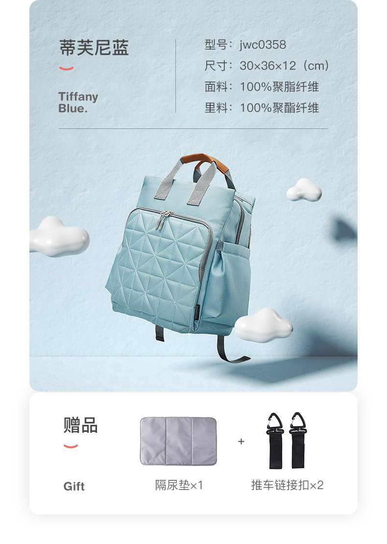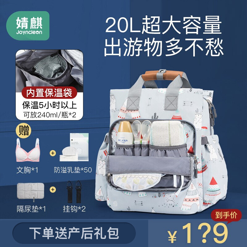 商品名称:婧麒(JOYNCLEON)妈咪包妈妈背奶包双肩包多功能大容量外出时尚妈妈母婴包宝妈婴儿背包 梦幻塔【大号】【科学设计多功能时尚妈咪包】