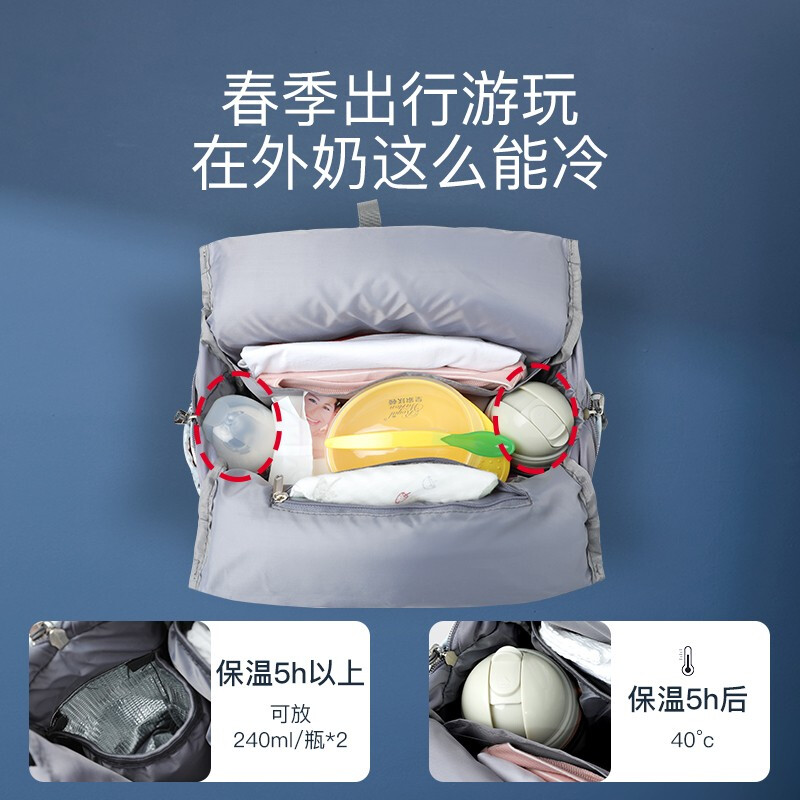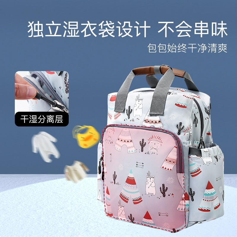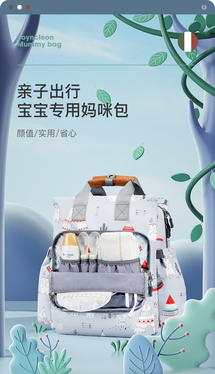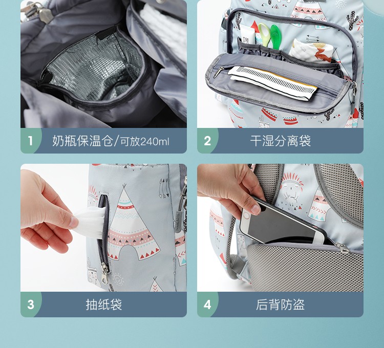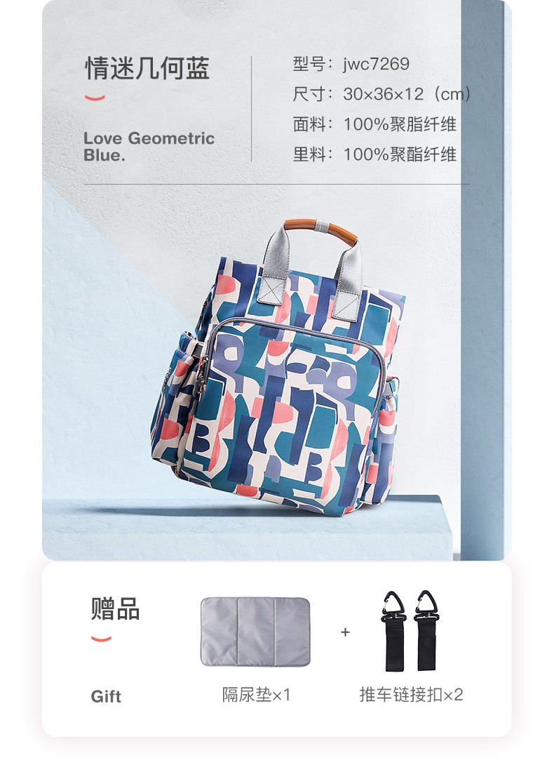 商品名称:婧麒(JOYNCLEON)妈咪包妈妈背奶包双肩包多功能大容量外出时尚妈妈母婴包宝妈婴儿背包 梦幻塔【大号】【科学设计多功能时尚妈咪包】