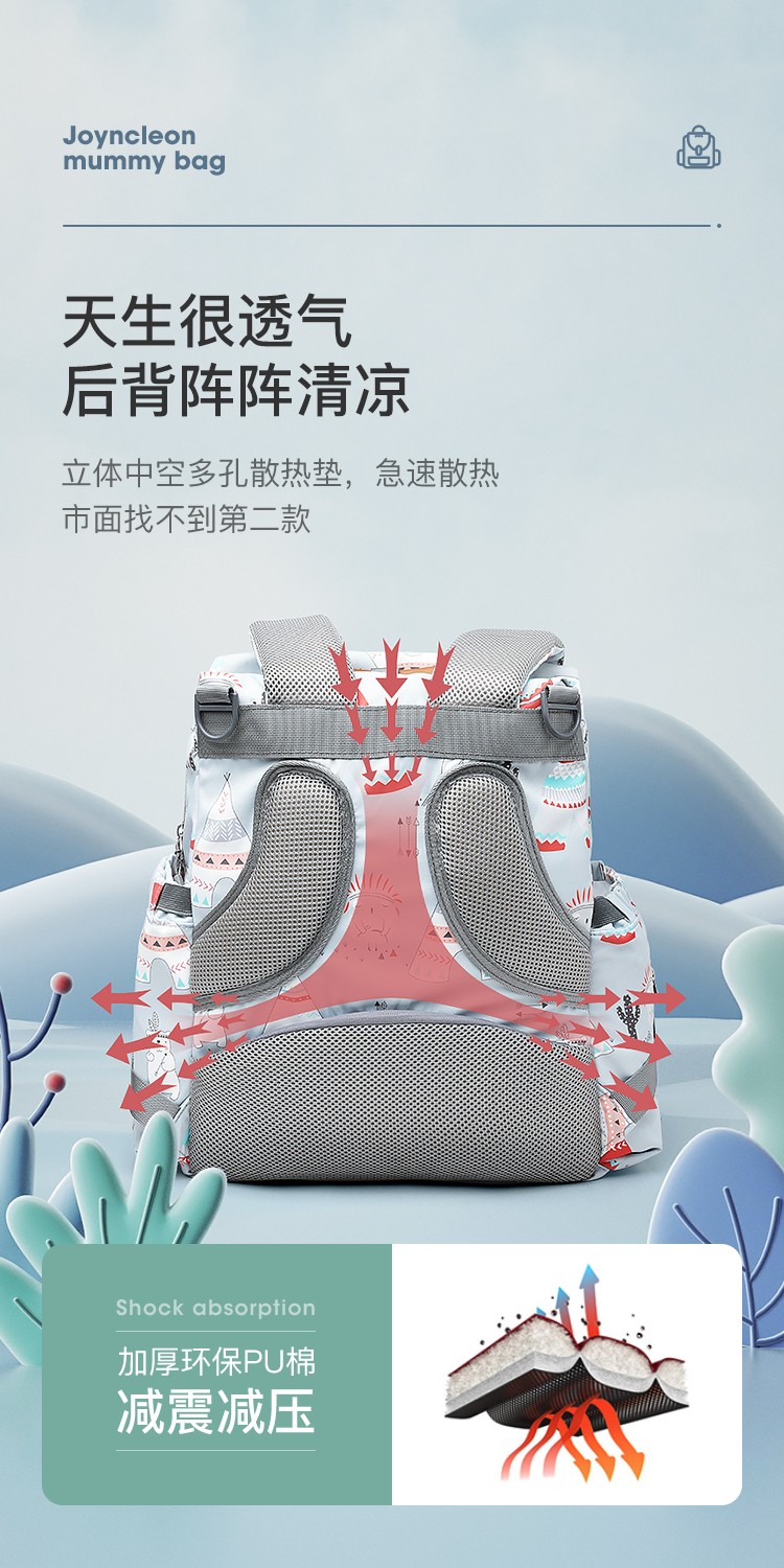 婧麒(JOYNCLEON)妈咪包妈妈背奶包双肩包多功能大容量外出时尚妈妈母婴包宝妈婴儿背包 梦幻塔【大号】【科学设计多功能时尚妈咪包】