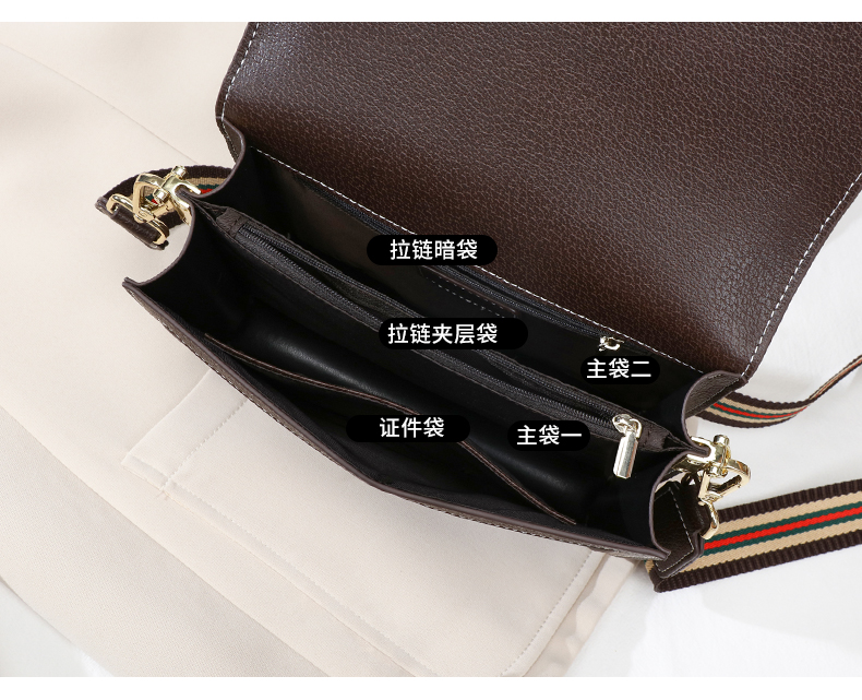 内部结构:证件袋,夹层拉链袋,手机袋,拉链暗袋