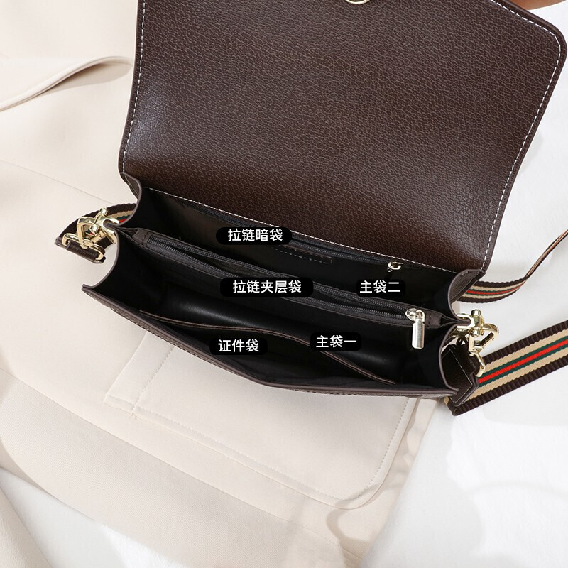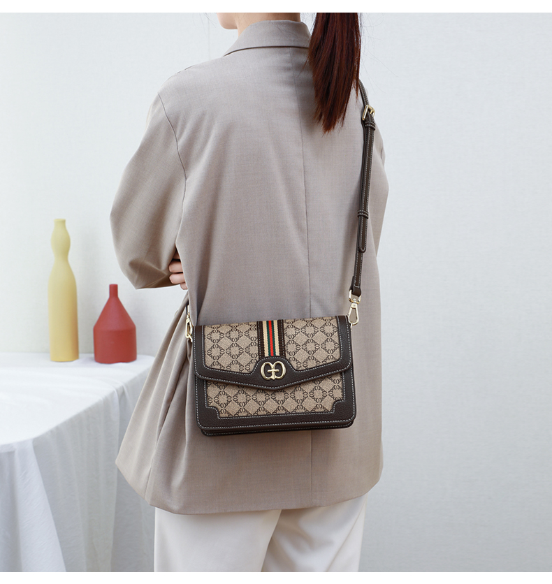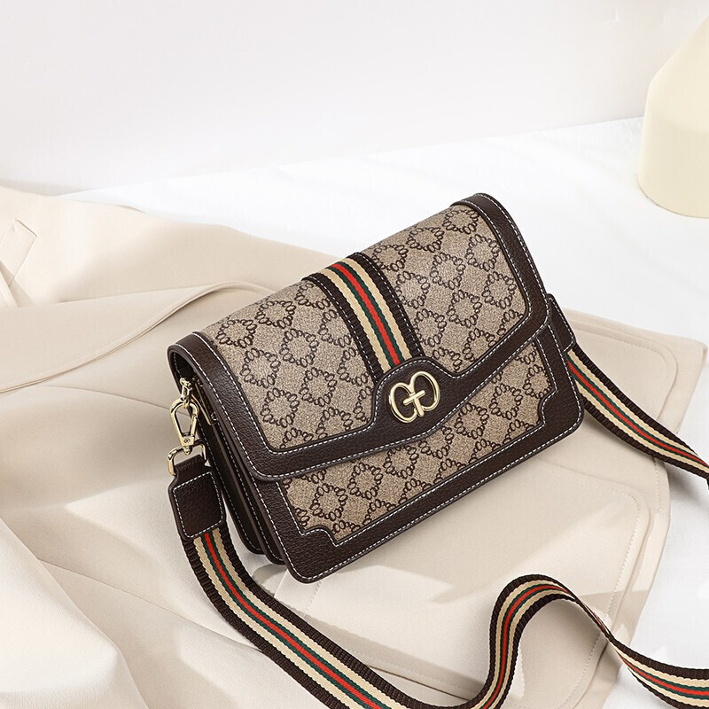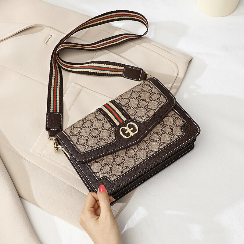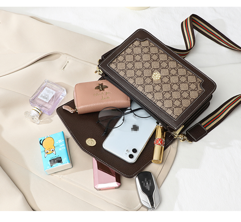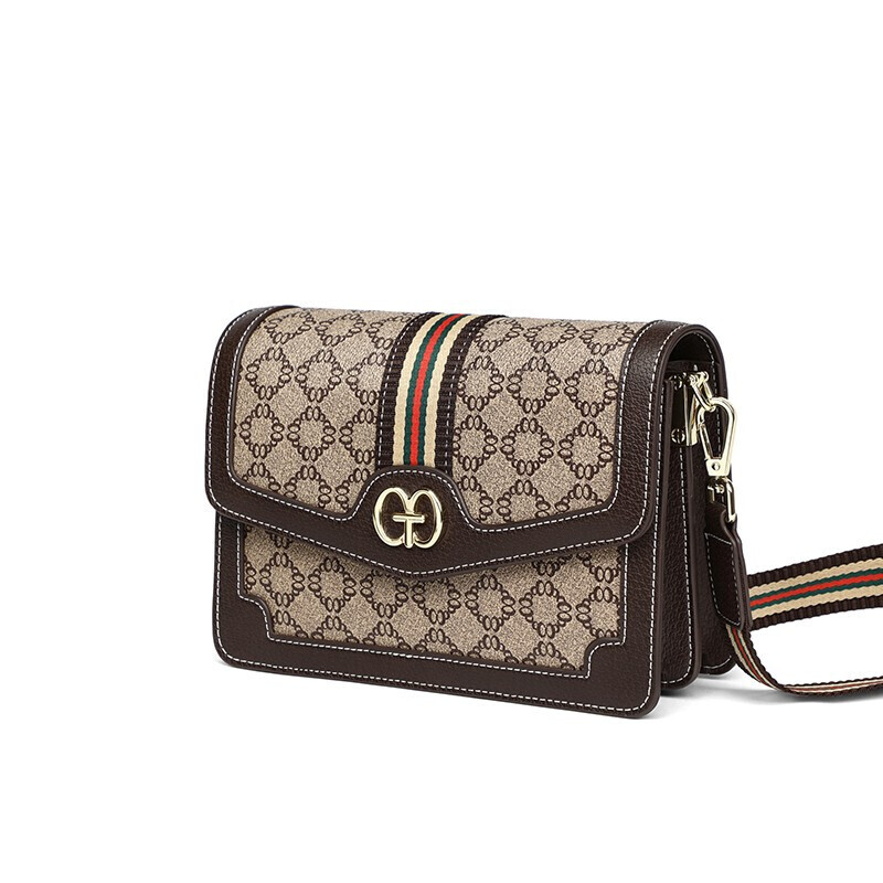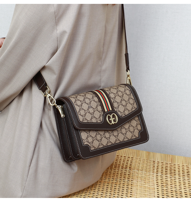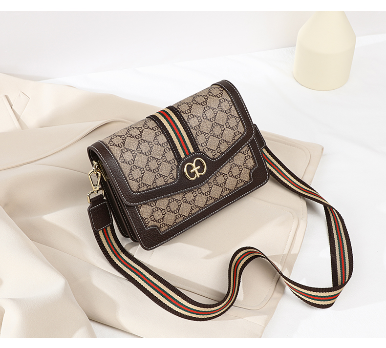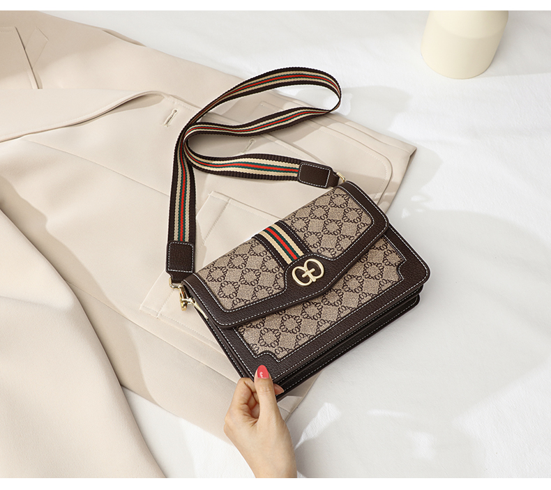 爱情海包包女包时尚百搭斜挎包女韩版宽肩带印花单肩包女潮大容量流行小方包(咖啡色)