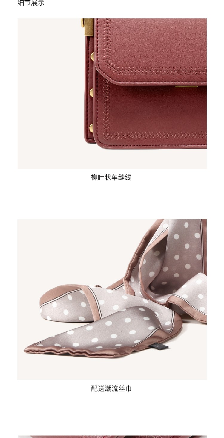 商品名称:缇纳迷你ck小包包女包新品单肩斜挎包女士2021新款潮流行春夏时尚休闲百搭网红风琴明星同款式品牌丝巾 巧克力酒红