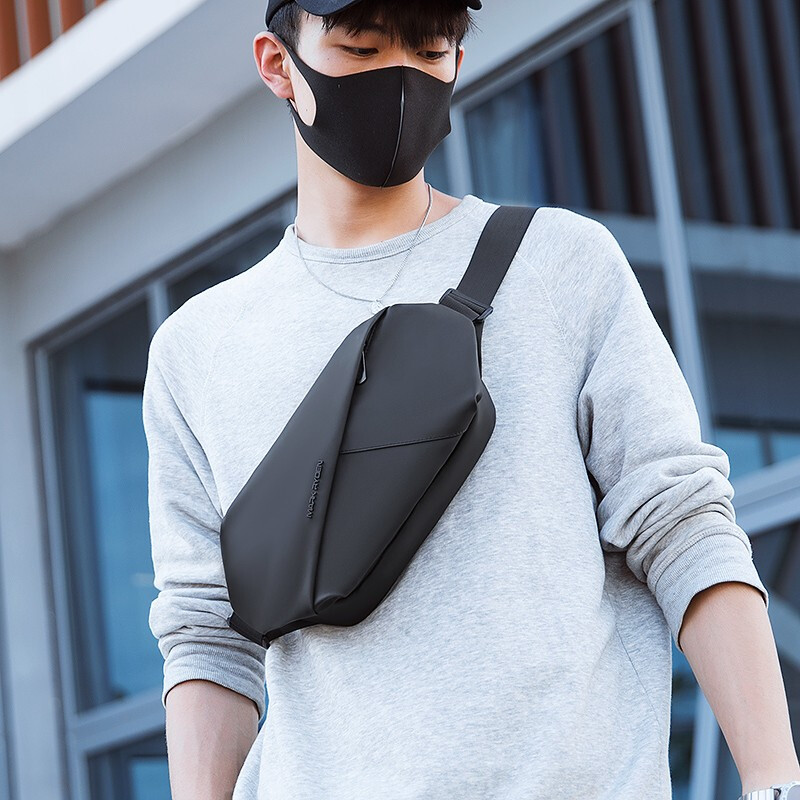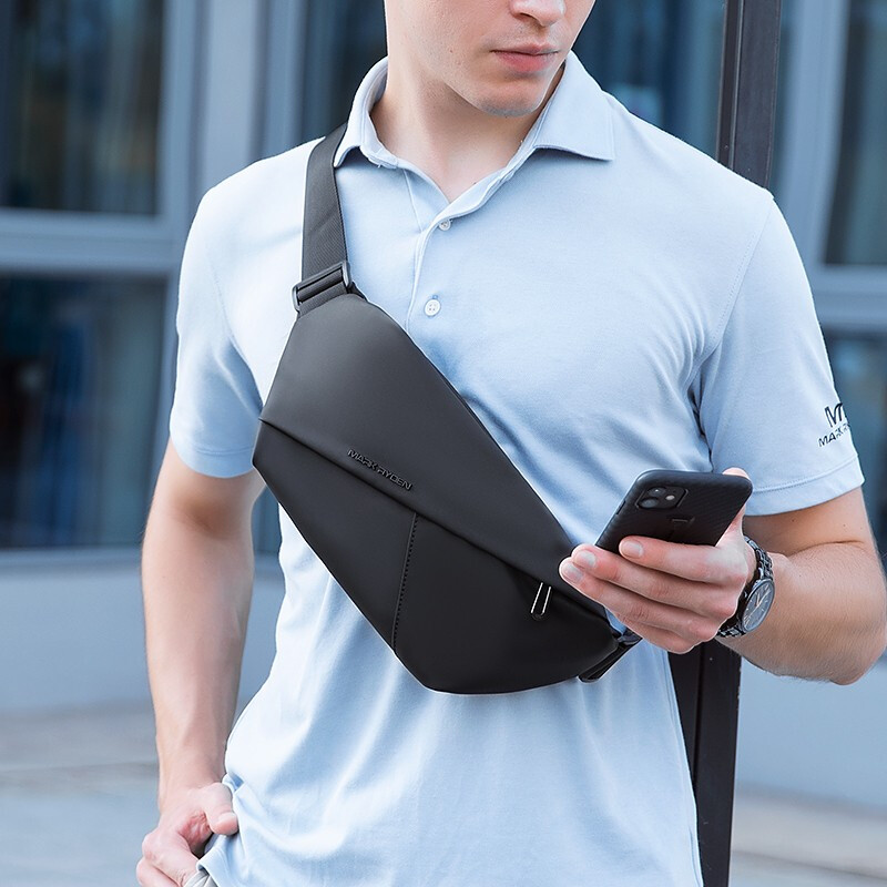 马可莱登(MARK RYDEN)单肩包男士包包机车斜挎包时尚潮流胸包骑行腰包迷你大容量手机包MR7786典雅黑