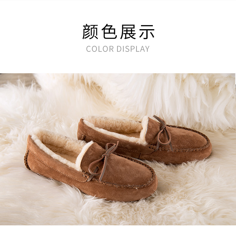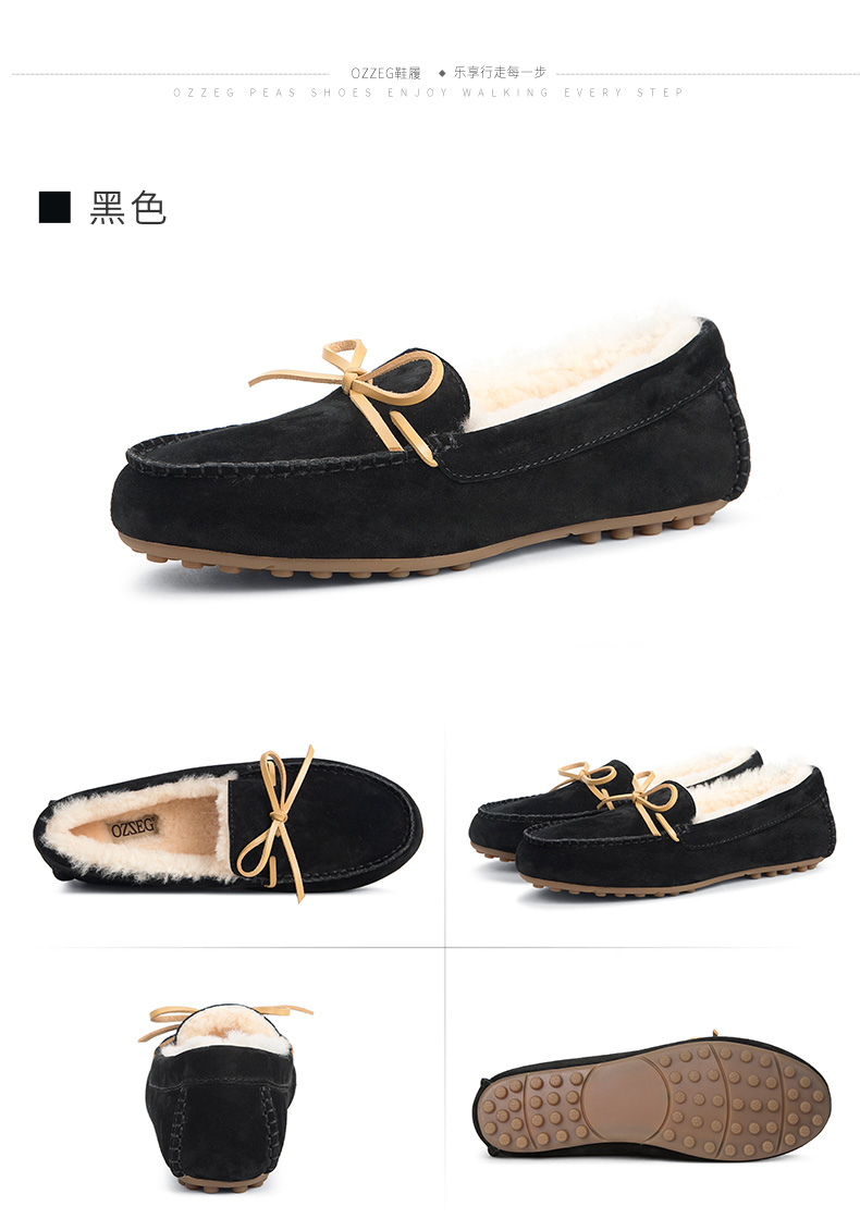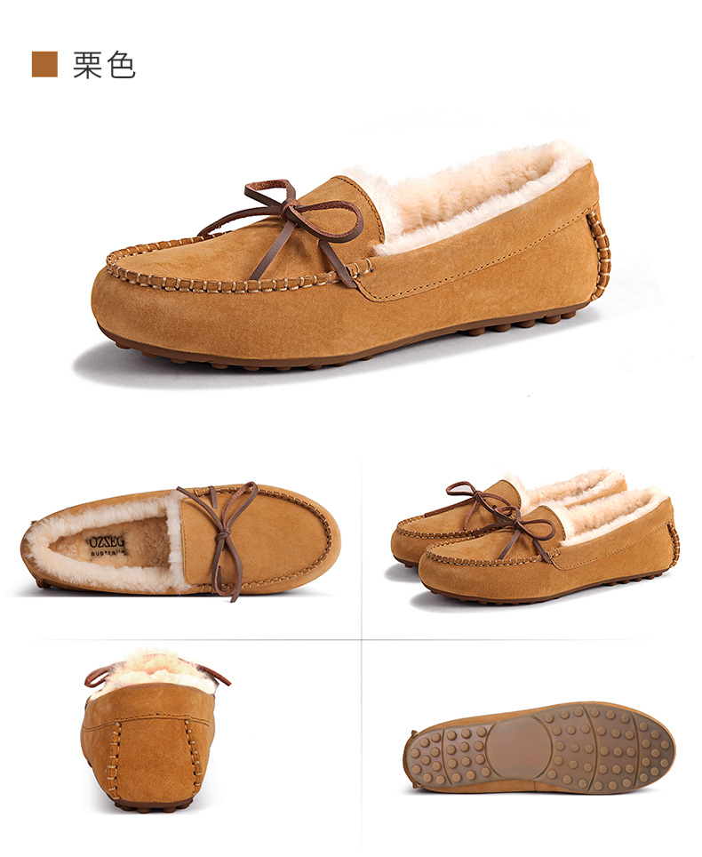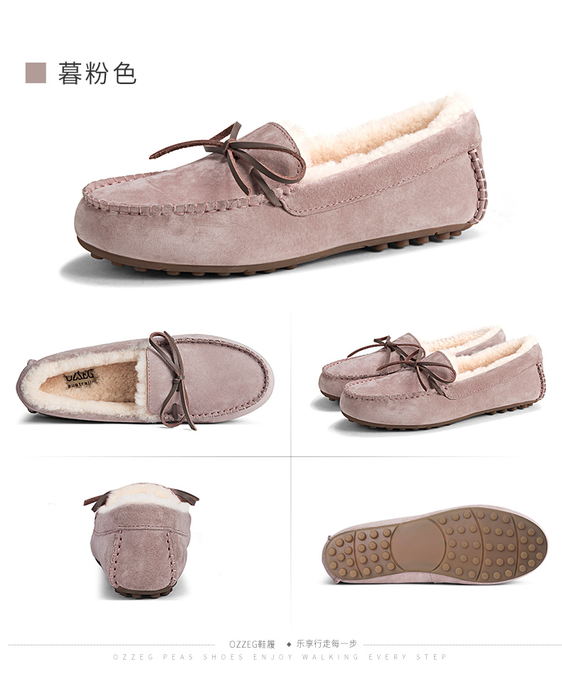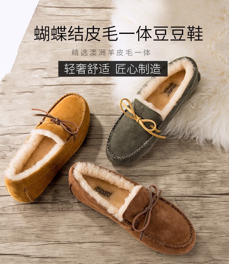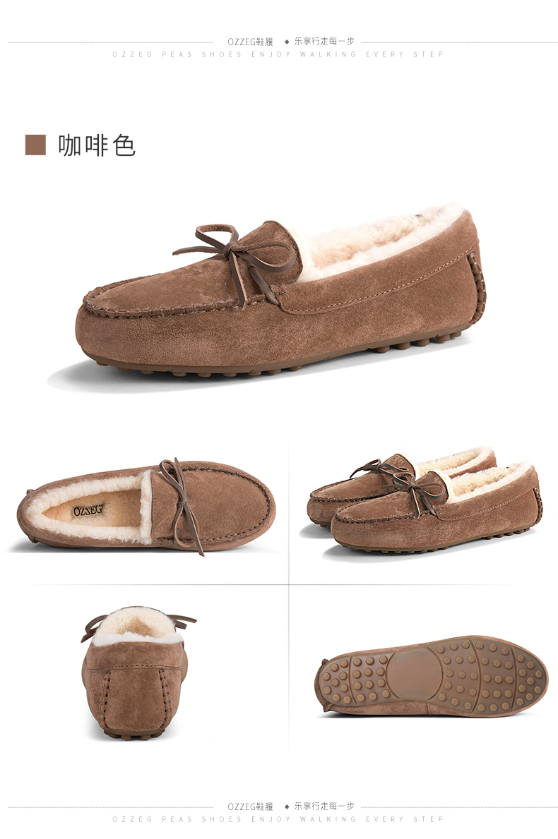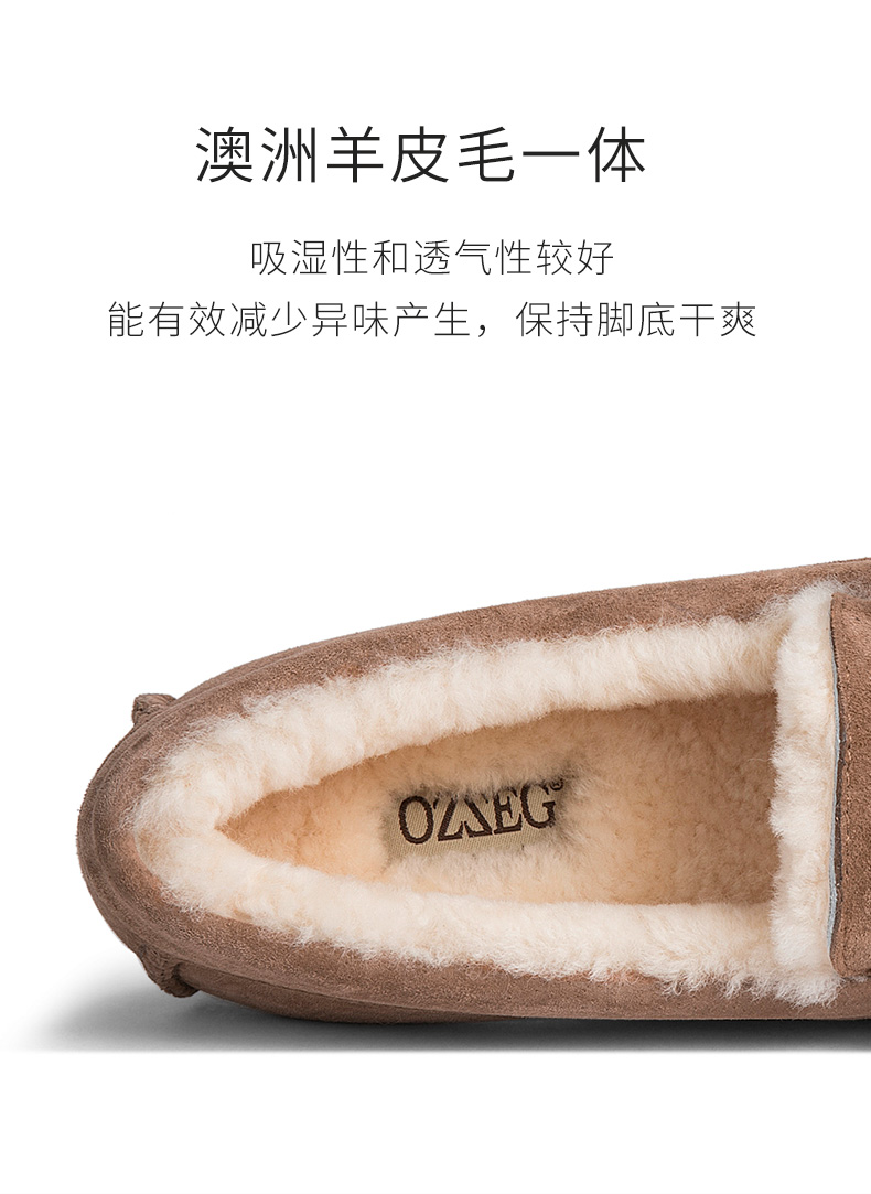 商品名称:澳洲OZZEG 加绒豆豆鞋女冬季冬款羊皮毛一体毛毛鞋平底棉单鞋防滑孕妇鞋真皮保暖乐福鞋 咖啡色 37