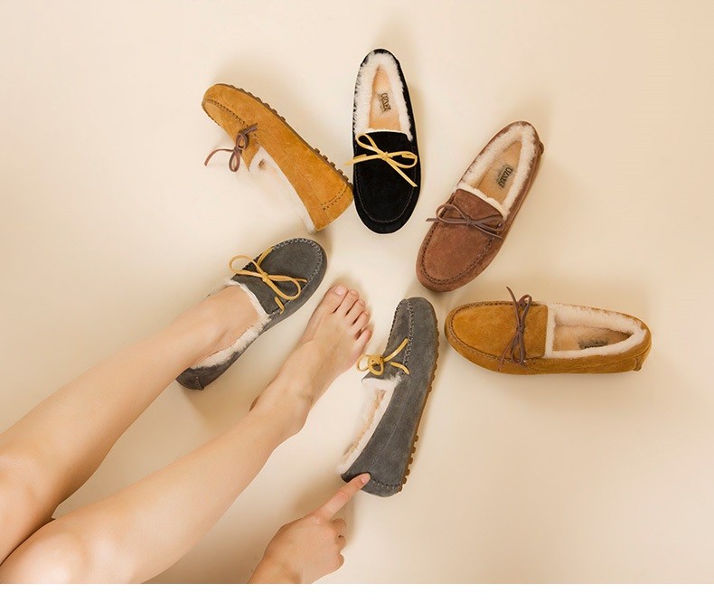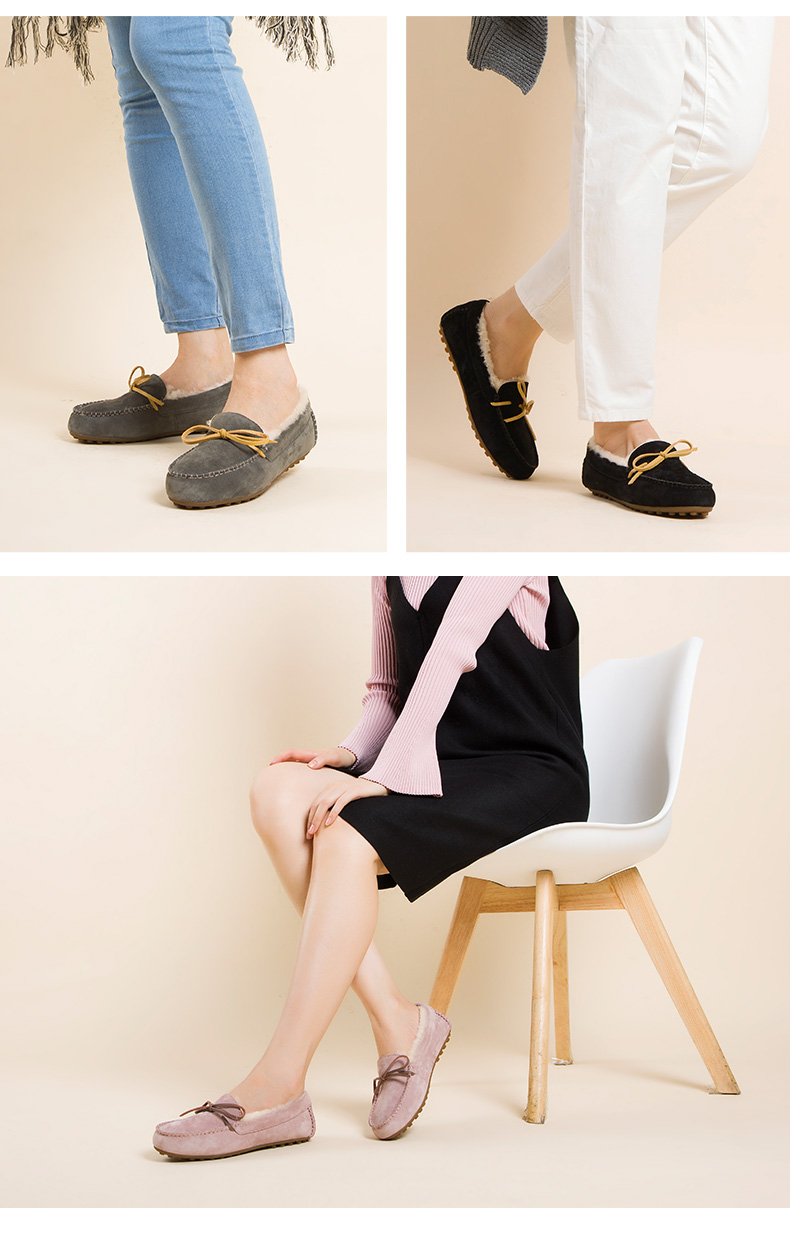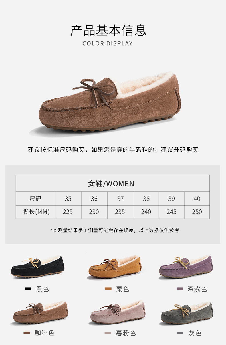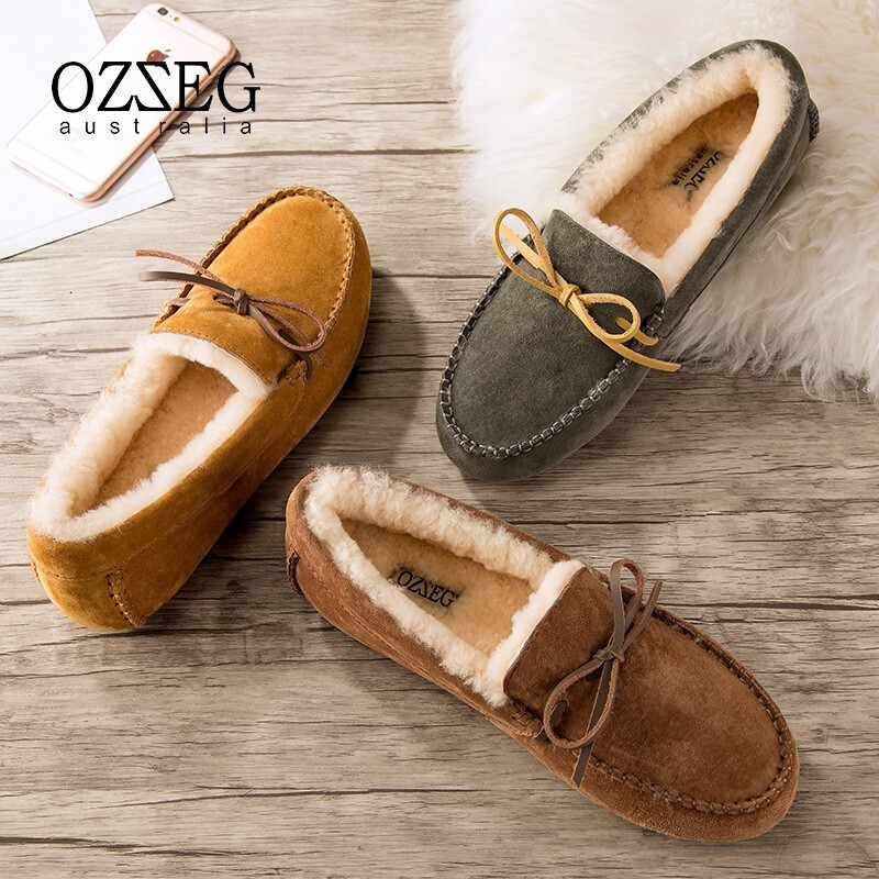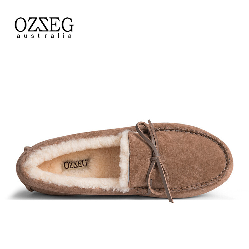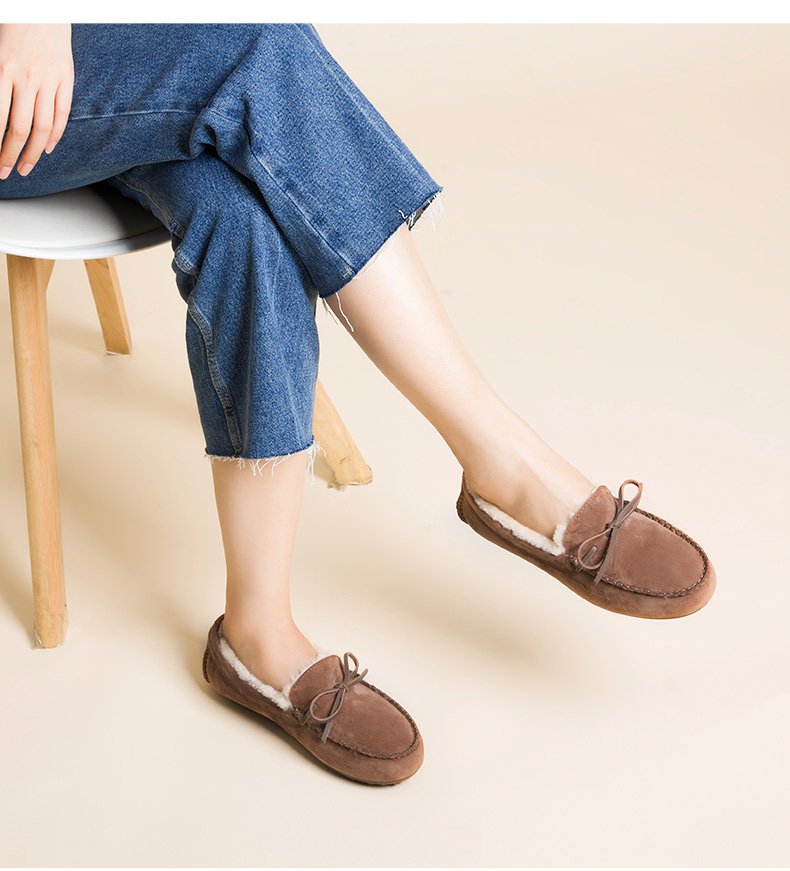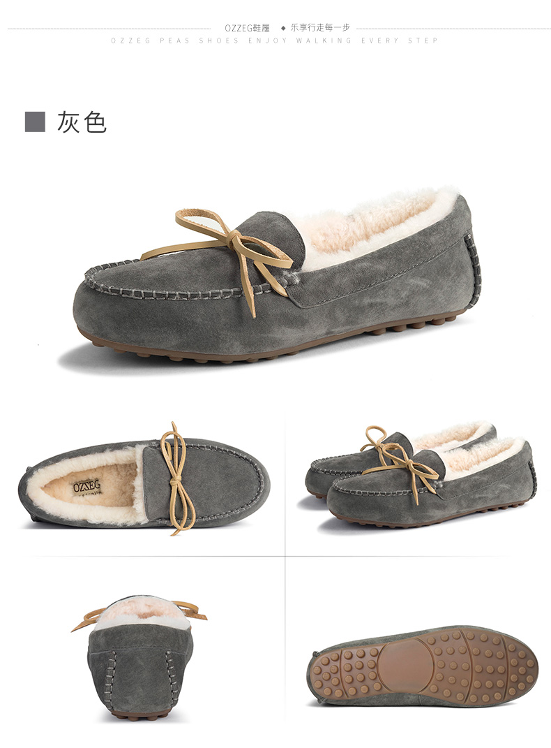 商品名称:澳洲OZZEG 加绒豆豆鞋女冬季冬款羊皮毛一体毛毛鞋平底棉单鞋防滑孕妇鞋真皮保暖乐福鞋 咖啡色 37