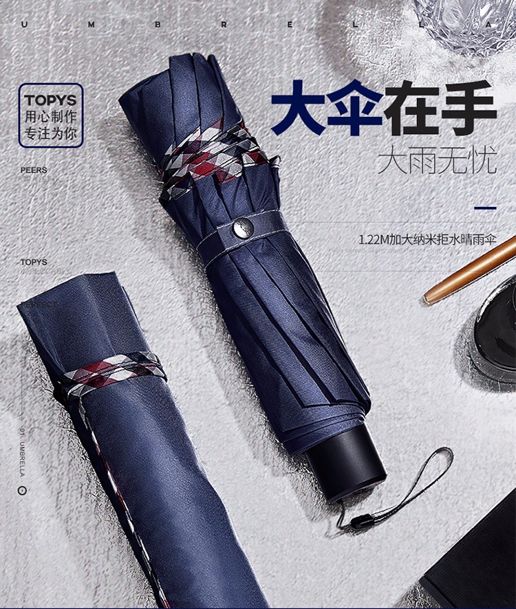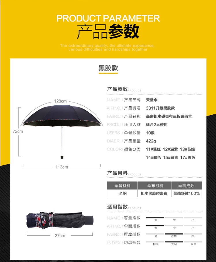 商品名称:天堂伞三折伞商务伞雨伞晴雨伞强效拒水加大雨伞男女 5#藏青