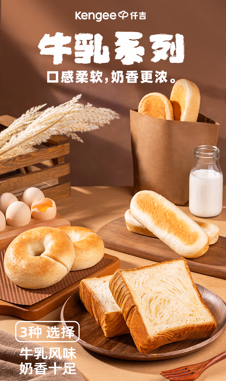 商品名称:仟吉 牛乳面包早餐 厚切吐司 代餐饱腹食品零食充饥 6袋 (组合)
