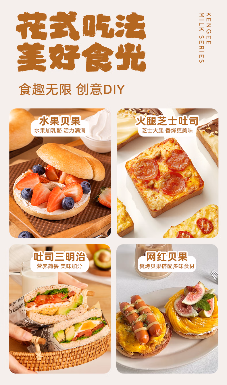 仟吉 牛乳面包早餐 厚切吐司 代餐饱腹食品零食充饥 6袋 (组合)