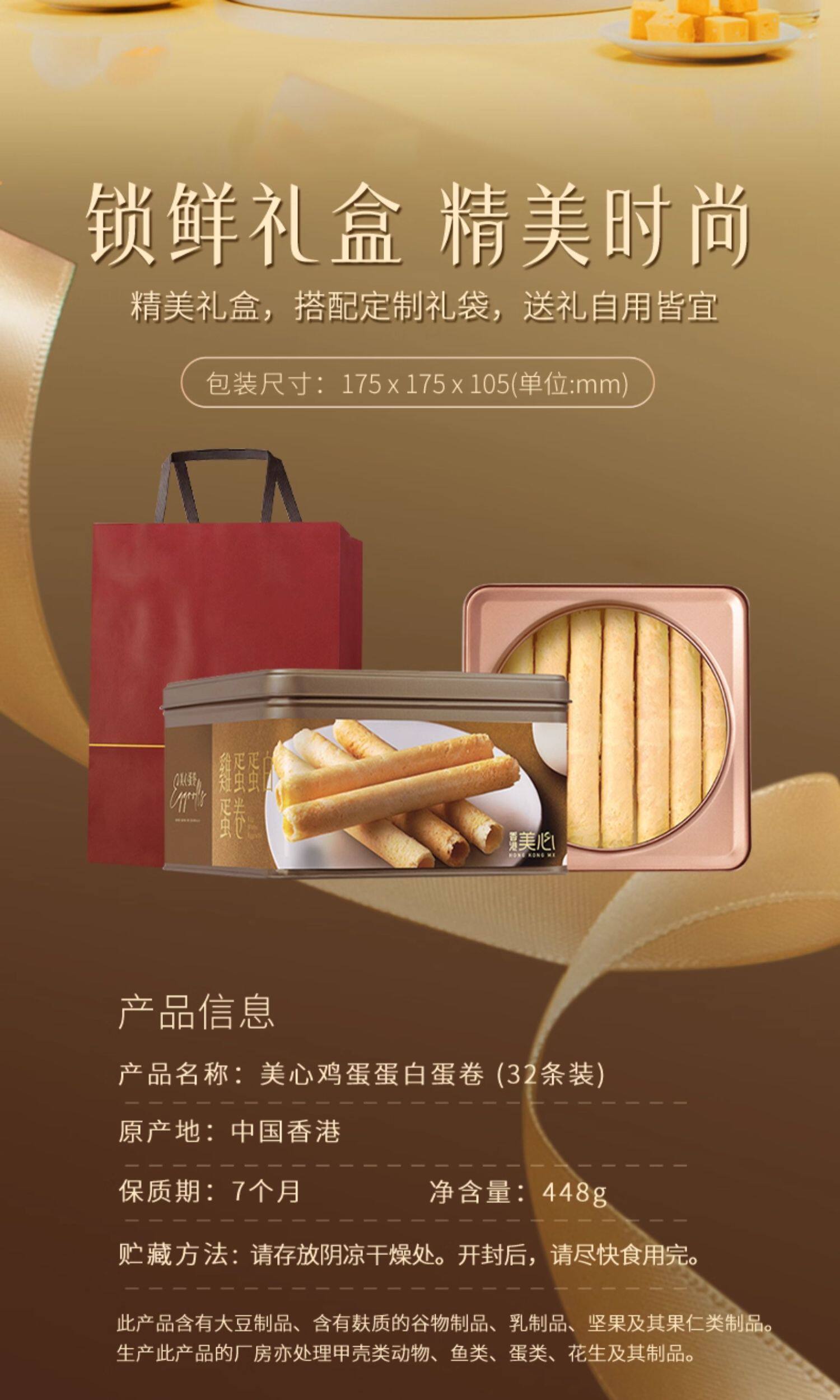 商品名称:美心(Meixin)原味鸡蛋卷448g 香港特产饼干休闲零食企业中秋送礼团购