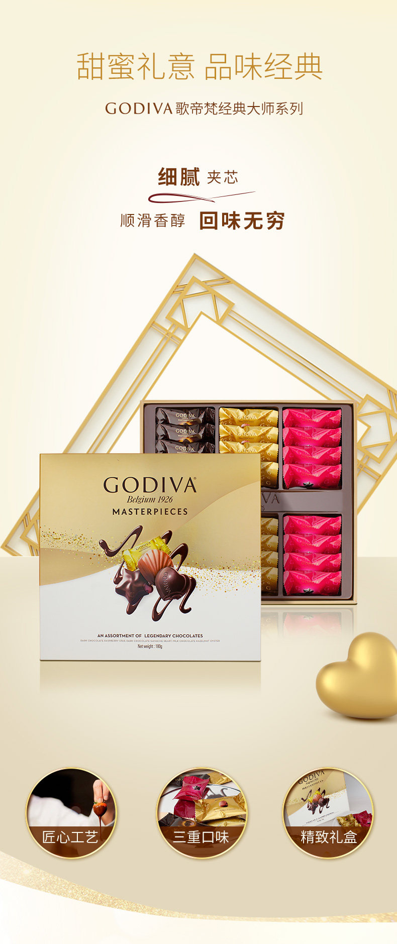 歌帝梵(Godiva)经典大师夹心黑巧克力高端礼盒 30颗230g 中秋节礼物 零食 伴手礼