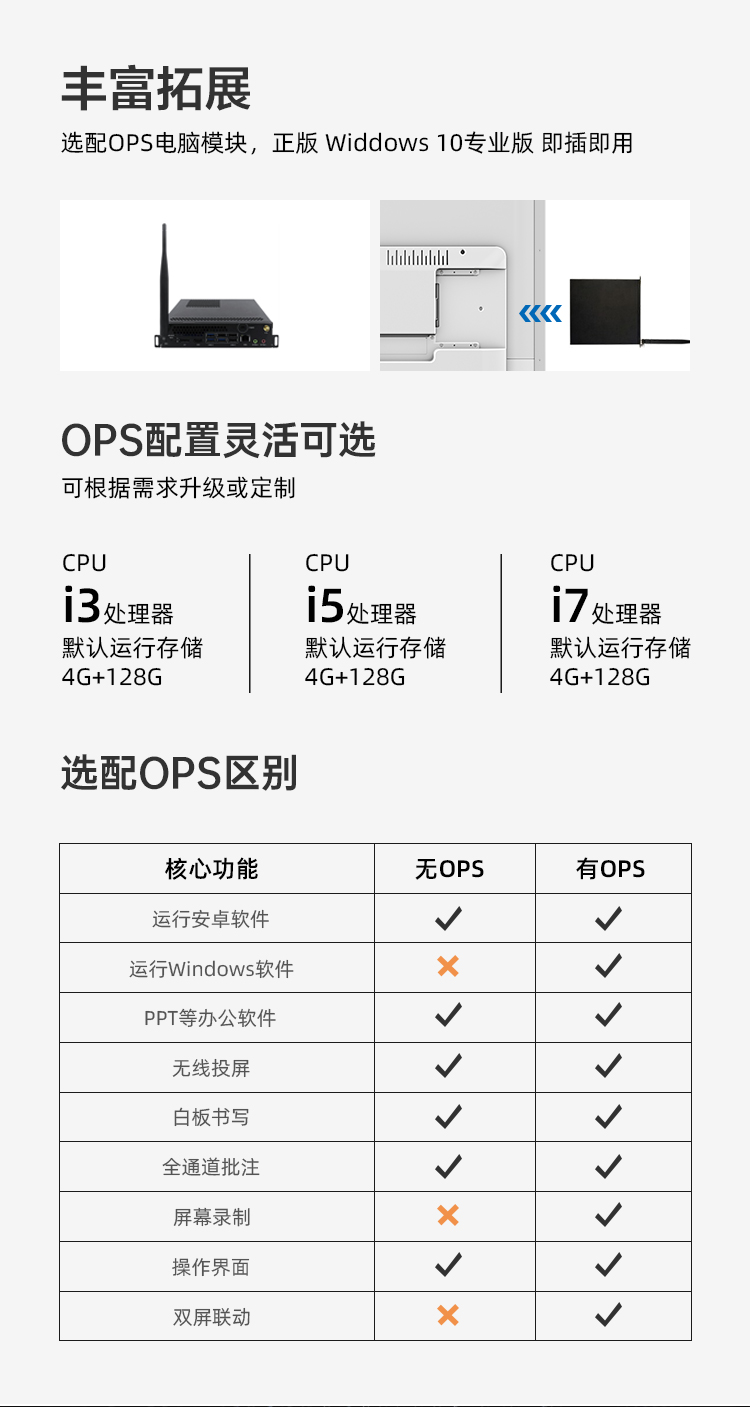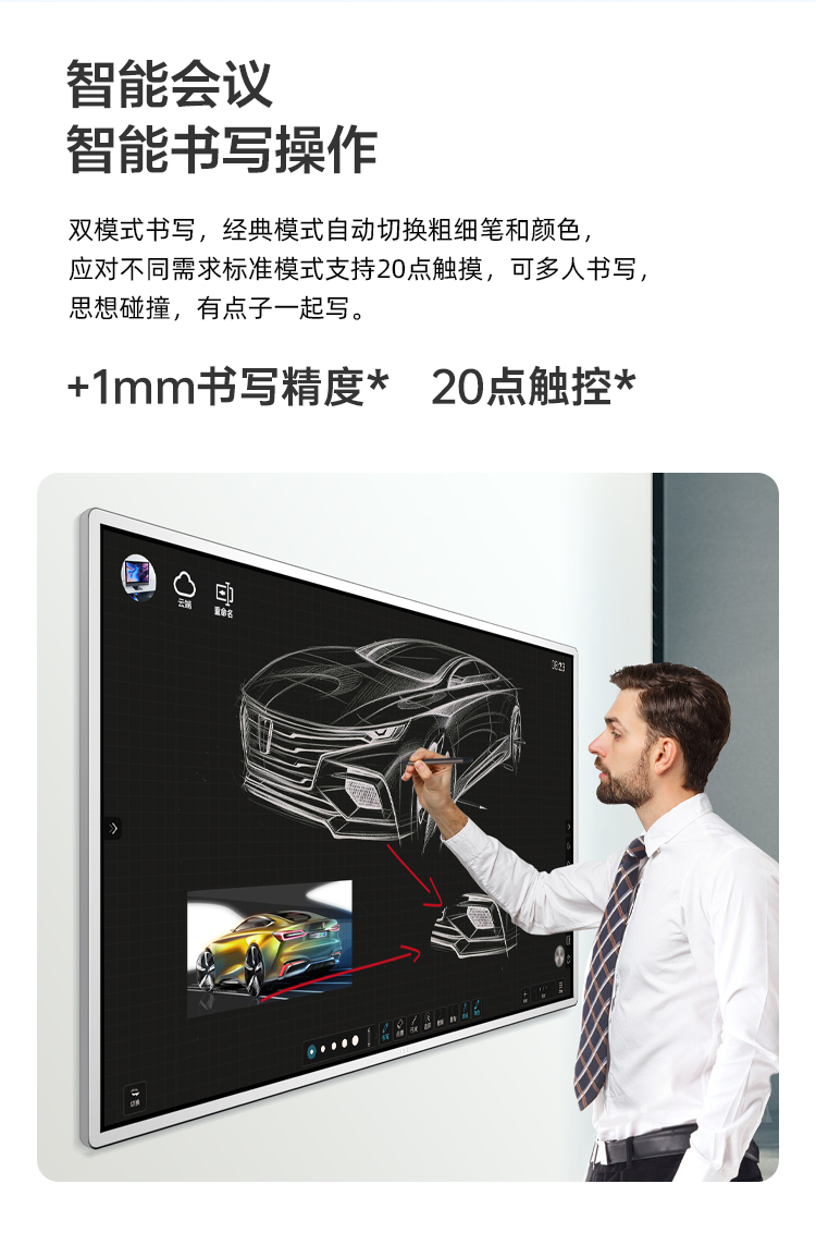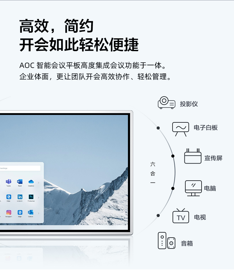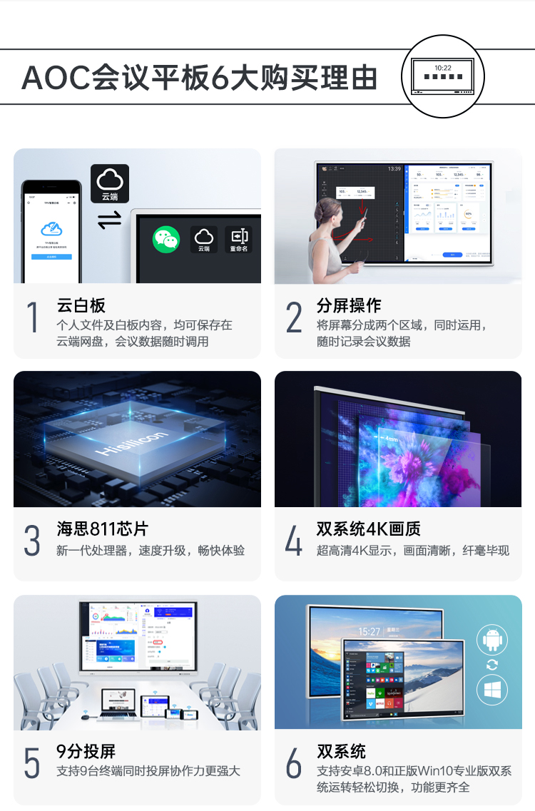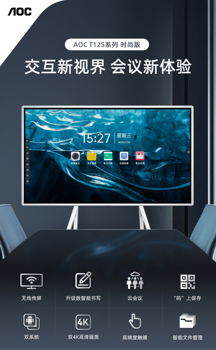 AOC会议平板65英寸会议一体机4k触控电子白板多媒体教学触摸屏电视显示器商用大屏65T12S+推车+投屏器+智能笔