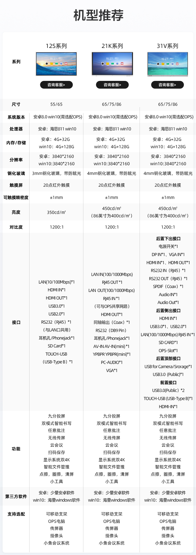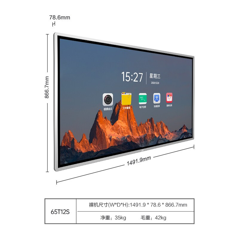 商品名称:AOC会议平板65英寸会议一体机4k触控电子白板多媒体教学触摸屏电视显示器商用大屏65T12S+推车+投屏器+智能笔
