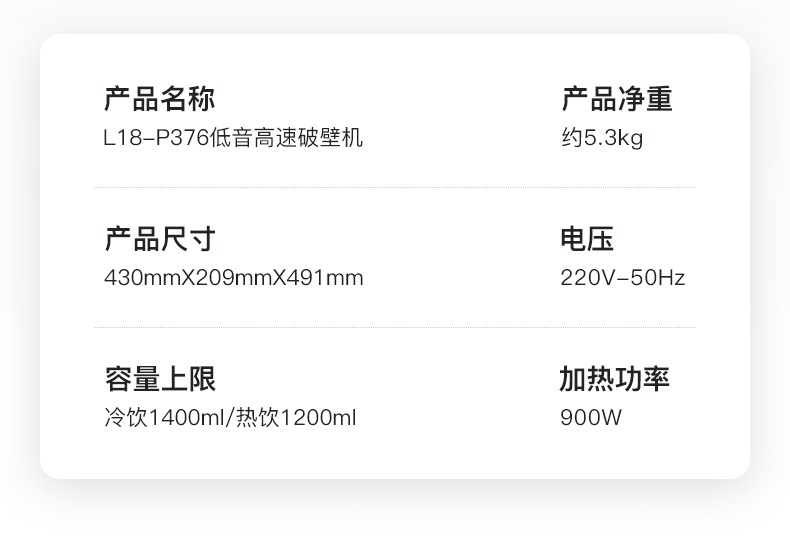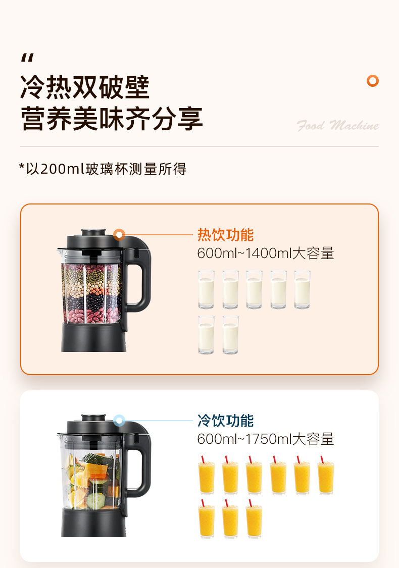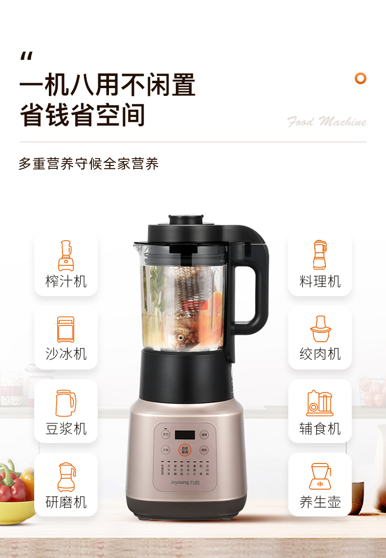 商品名称:九阳(Joyoung)破壁机家用大容量可预约加热多功能榨汁机豆浆料理机清洗双杯新品 珍珠棕 L18-P376