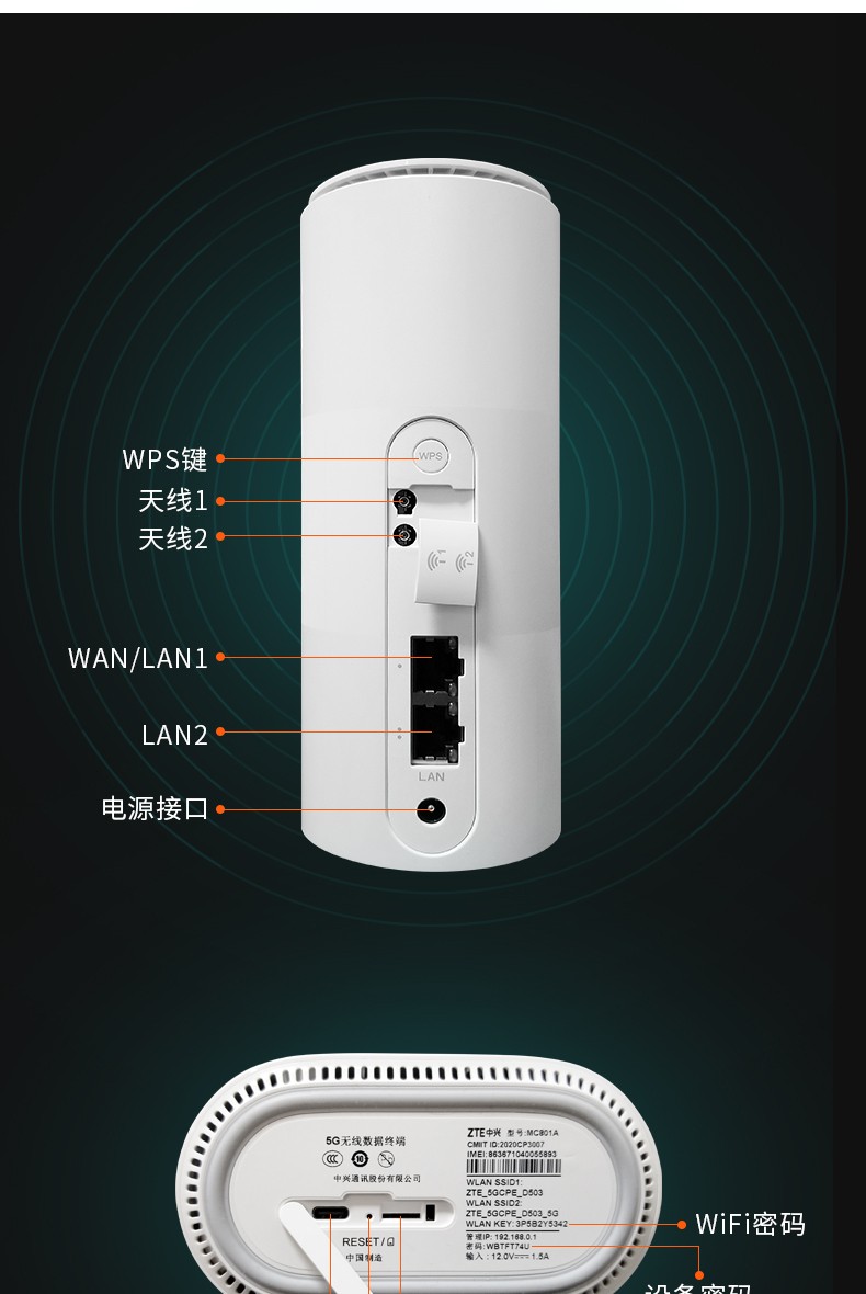 商品名称:中国联通 中兴5G无线宽带包年包月移动上网千兆多功能路由器插卡wifi手机5G信号转有线企业工业热点 多功能5G无线路由器