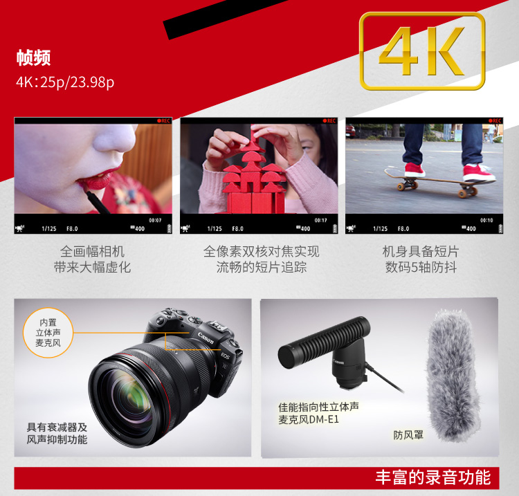 5轴防抖,4K视频,高速连拍,WIFI连接,翻转自拍