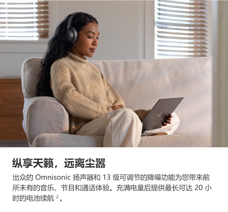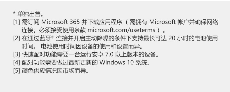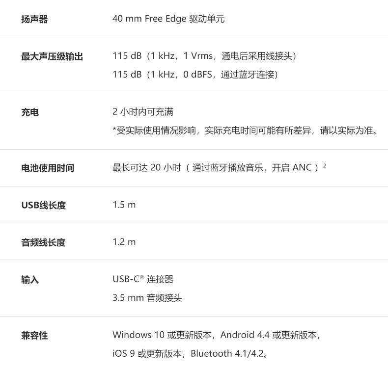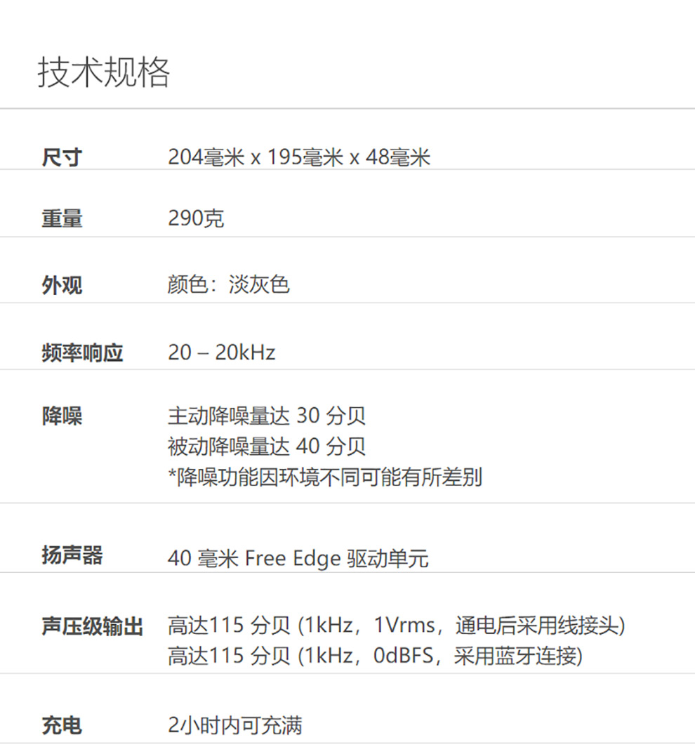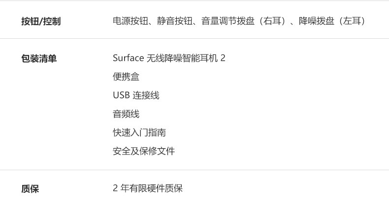 包装清单:SurfaceHeadphones×1,便携盒×1,USB连接线×1,音频线×1,快速入门指南×1,安全及保修文件×1