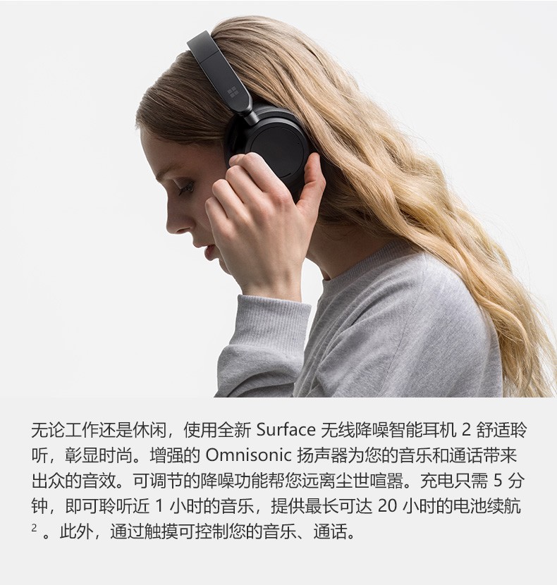 微软(Microsoft) Surface Headphones 2蓝牙无线降噪耳机触摸控制语音助手 微软耳机 Headphones 二代 典雅黑 标配
