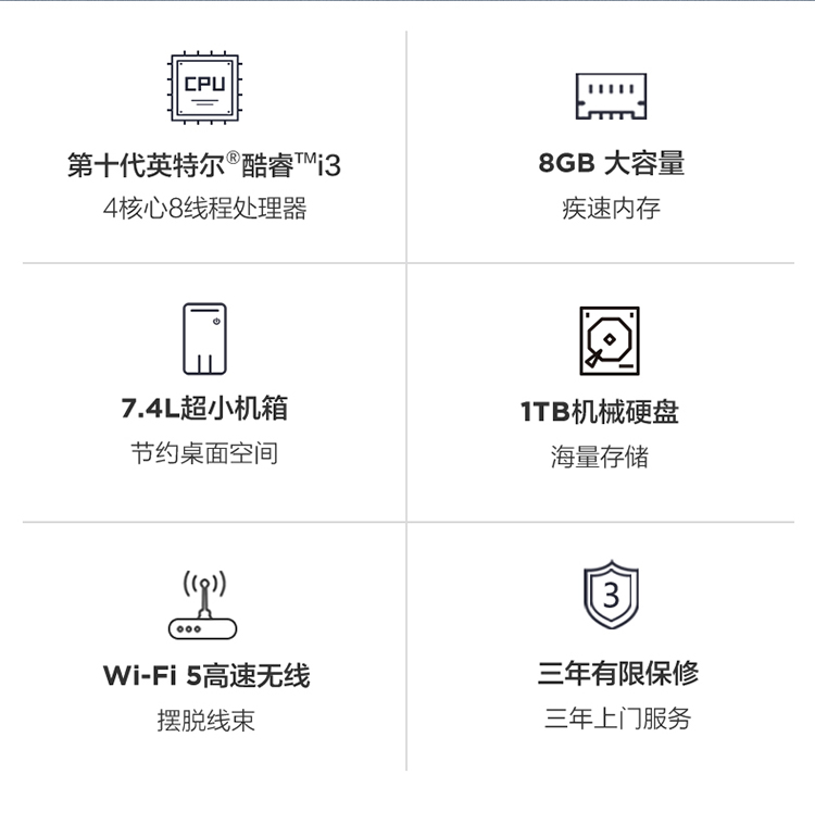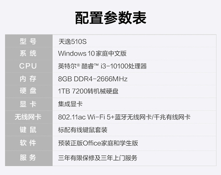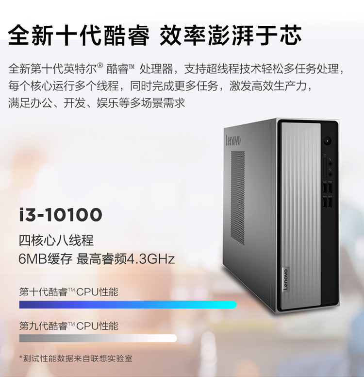 商品名称:联想(Lenovo)天逸510S 十代英特尔酷睿i3 台式机电脑整机(i3-10100 8G 1T wifi win10 三年上门)21.5英寸