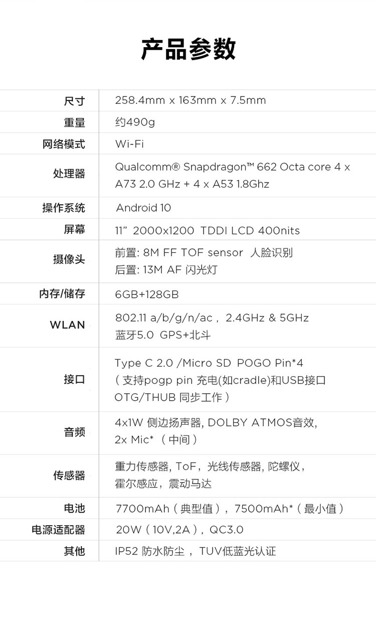 包装清单:主机*1,充电器*1,TypeCUSB数据线*1,三包凭证*1,推卡器*1
