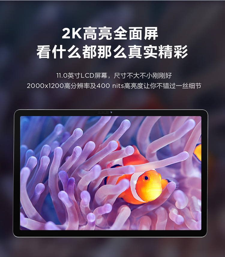 联想(Lenovo)平板小新Pad 11英寸 学习娱乐平板电脑 学习模式 2k全面屏 6GB+128GB WIFI灰